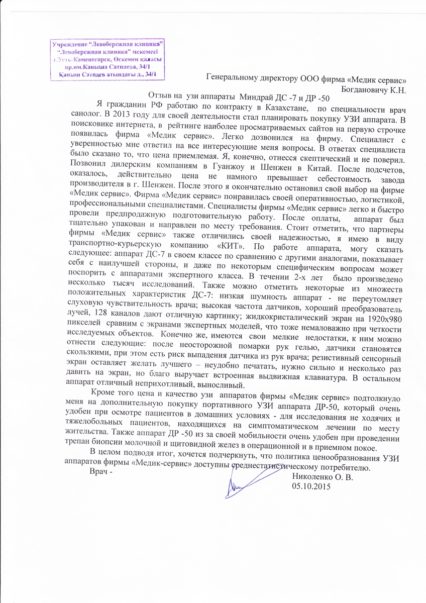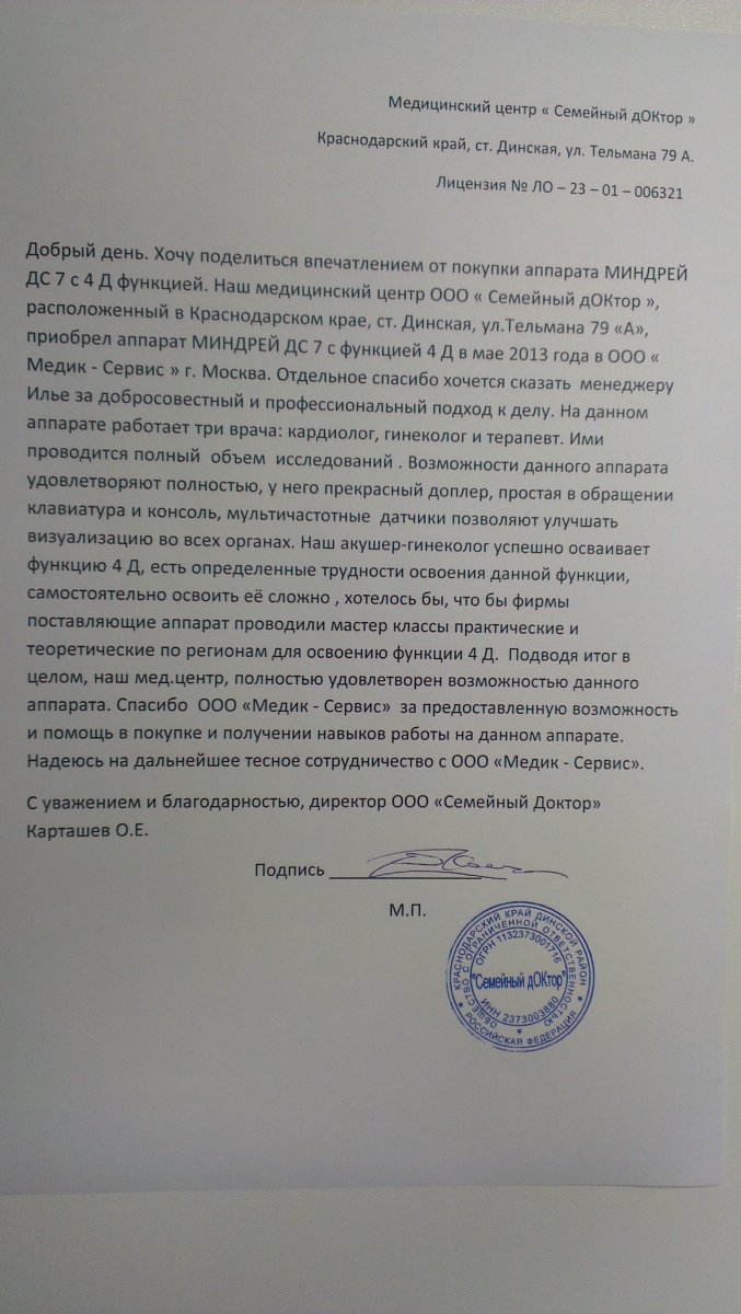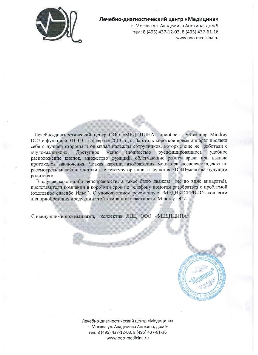 Гарантийное и послегарантийное обслуживание ультразвуковых сканеров Mindray осуществляется ООО "Медик-Сервис" - авторизованным сервисным центром Mindray (Миндрей) на территории Российской Федерации. |